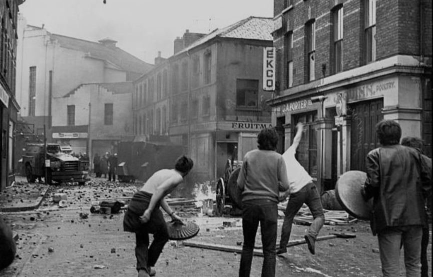 La radici della “Bloody Sunday” vanno cercate nella primavera del 1969. In aprile a Derry si festeggia l’elezione alla Camera dei Comuni, di Bernardette Deviln, giovanissima militante repubblicana e cattolica che dovrà rappresentare il Mid-Ulster. I lealisti alla corona non la prendono affatto bene e la polizia, Royal Ulster Constabulary, assieme alle milizie protestanti, cominciano a esercitare indiscriminate violenze in strada e penetrando nelle abitazioni dei civili. La situazione precipita in agosto quando la popolazione cattolica decide di difendersi dando via ai cosiddetti “Troubles“. Ristabilire l’ordine diventa il pretesto per far si che Londra invii l’esercito, che nelle intenzioni di Westminster dovrebbero rimanere per poche settimane. Ci rimarranno invece per 25 anni, militarizzando di fatto le città e creando un sistema segregazionista dove vengono sospesi i diritti e le libertà e si può essere incarcerati senza alcuna garanzia. La reazione non si limita più alle frequenti manifestazioni di strada, che verranno ben presto vietate, e la Battaglia del Bogside segna il punto in cui la lotta passa dall’essere una situazione di agitazione sociale a diventare un conflitto armato che porta a una profonda frattura anche all’interno dell’IRA e alla conseguente nascita del Provisional Irish Republican Army.