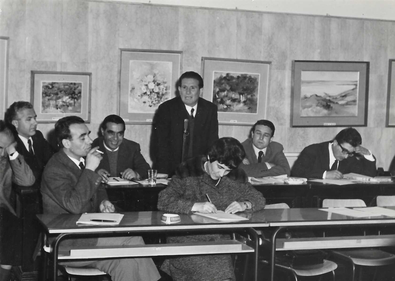 (nell’immagine in evidenza Ciccino-Orru interviene nell’aula del consiglio provinciale di Nuoro; da destra Mario Pani, Pietrino Melis, Roberto Pischedda, Mario Birardi e in primo piano Francesca Zinedda Sale)