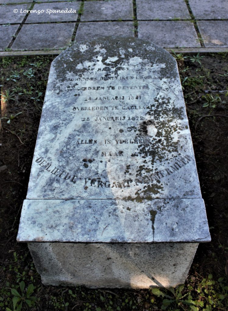 Questa l’iscrizione in lingua olandese sulla tomba del Capitano: “Qui riposa Johannes Hendrikus Looman, nato a Deventer, 24 Gennaio 1841, morto a Cagliari, 10 Marzo 1872. Tutto passa ma l’amore dura in eterno”. Nella lastra funebre sono riportati simboli massonici, alla sinistra la stella a cinque punte, alla destra squadra e compasso intrecciati.