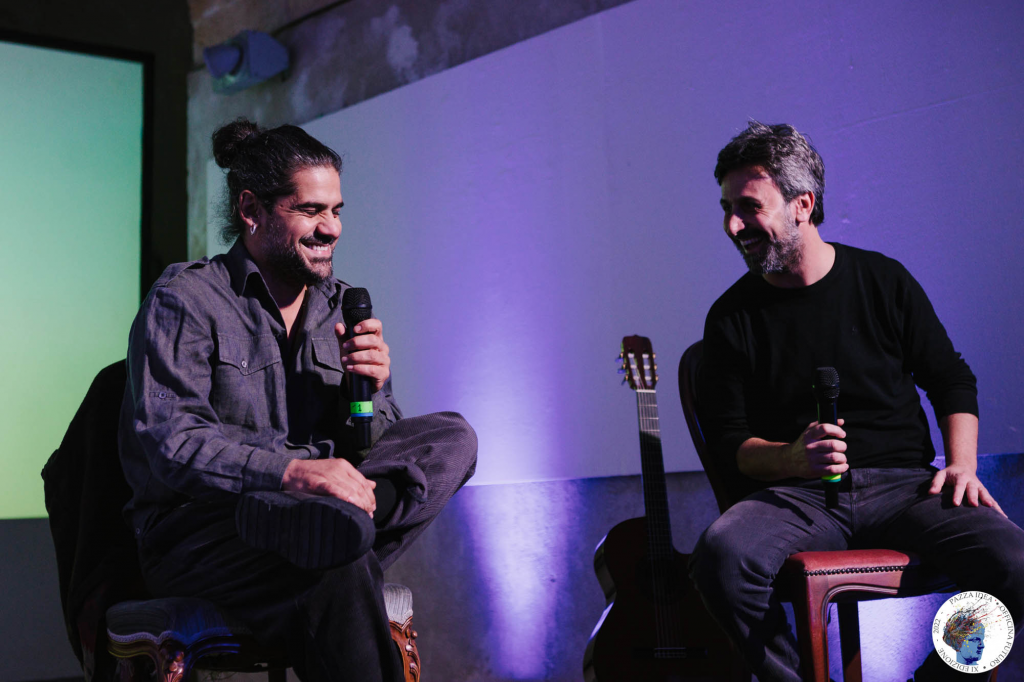 Nel brioso incontro con il pubblico cagliaritano chiaramente non poteva mancare la musica. Mannarino, accompagnato solo della sua chitarra, ha deliziato la platea con alcuni classici del suo repertorio dedicati a figure femminili come ‘Marilù‘ e ‘Maddalena’, con uno spassoso inedito, ‘Il carcerato’ e con ‘Congo’ e ‘Paura’ tratte dal suo ultimo disco ‘V’, che, per citare i versi della sua ‘Arca di Noè’, alla fine della fiera, può significare vendetta, o magari speranza o “forse solo un po’ d’amore”.