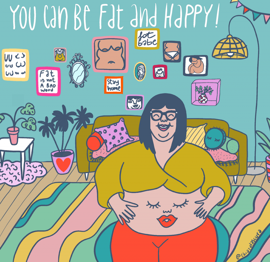 Fondamentalmente siamo a disagio con l’equazione cibo/mangiare = grasso perché come menzionato prima, le persone grasse non sono tutte sintomi della stessa malattia e ogni persona grassa lo è per ragioni diverse. Di certo è singolare che la stessa cultura che invita al sacrificio e al controllo, sia la stessa che ci bombarda attraverso i media con continue immagini di cibo. Il corpo grasso è utilizzato spesso come metafora dell’ingordigia del capitalismo, che è lo stesso che però cerca di venderci prodotti per miracolose perdite di peso come beveroni, pasti liofilizzati, pastiglie per placare l’appetito, e sciroppi per limitare l’assorbimento dei carboidrati. L’ennesima prova che se l’industria della dieta avesse realmente puntato a far dimagrire la gente, ora le persone grasse non esisterebbero, e invece esistono ancora, perché il punto è speculare e capitalizzare sul senso di inadeguatezza che il capitalismo stesso inculca e lentamente instilla.