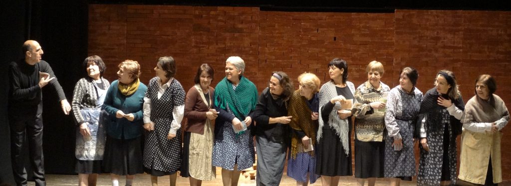 Sul palcoscenico del Teatro Massimo protagonisti, dunque, i “maturi” attori della Scuola di Arti Sceniche di Cada Die, alcuni dei quali, come Paola Ferro, testimoni diretti di quei giorni di cielo nero e pioggia di bombe. Torneranno a indossare i pantaloni corti e le divise da Balilla e Piccole Italiane, per rivivere tra i banchi delle scuole cagliaritane le giornate dei primi anni ’40. La maestra è severa: anche se ogni giorno li mette in punizione con le ginocchia sui ceci, preferiscono giocare a tzacca e poni o con le cerbottane, piuttosto che imparare a memoria le frasi del Duce! Sembra non si preoccupino tanto neanche della guerra. All’inizio anche il suono degli allarmi e la corsa verso i rifugi sembrano quasi un gioco. Fino a quel tragico 17 febbraio del ‘43… Un esempio, “La guerra dentro casa”, di scena popolare e di teatro civile, a cui Cada Die dedica da sempre un filone importante del suo impegno culturale.