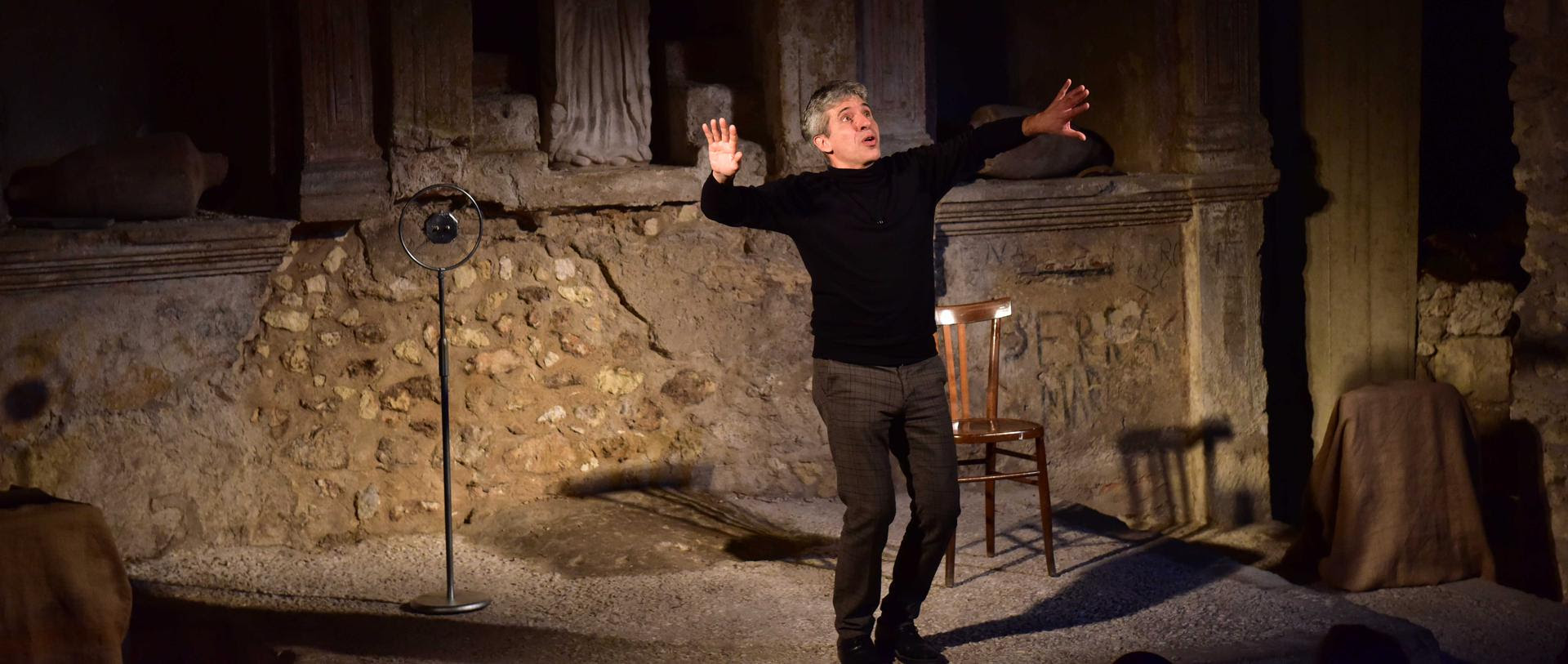 Cagliari 1943/2023: Memorie di guerra, percorsi di pace è partito nello scorso mese di febbraio con lo spettacolo “Cielo nero” allestito e registrato con una videoripresa nel suo “luogo deputato”, fra le suggestioni evocate dalla Cripta di Santa Restituta, nel quartiere storico di Stampace, a Cagliari, l’affascinante ipogeo che nel periodo più recente della sua storia plurimillenaria fu rifugio antiaereo, teatro il 17 febbraio del ’43 di una dolorosa tragedia che vide morire molte persone, fra cui il noto illustratore, caricaturista e pubblicitario Tarquinio Sini. Scritto da Pierpaolo Piludu in collaborazione con Francesco Niccolini, uno dei più affermati drammaturghi italiani, con la regia di Mauro Mou, è la storia di due fratelli gemelli, cresciuti durante il regime fascista nel quartiere di Stampace, che solo la guerra riesce a separare: nel 1943 uno sopravvive in Russia, l’altro rischia di morire a Cagliari sotto le bombe. Protagonisti di una storia più grande di loro, sono testimoni della follia della guerra e della distruzione della città, quando i bombardieri americani la ridussero per buona parte in polvere.