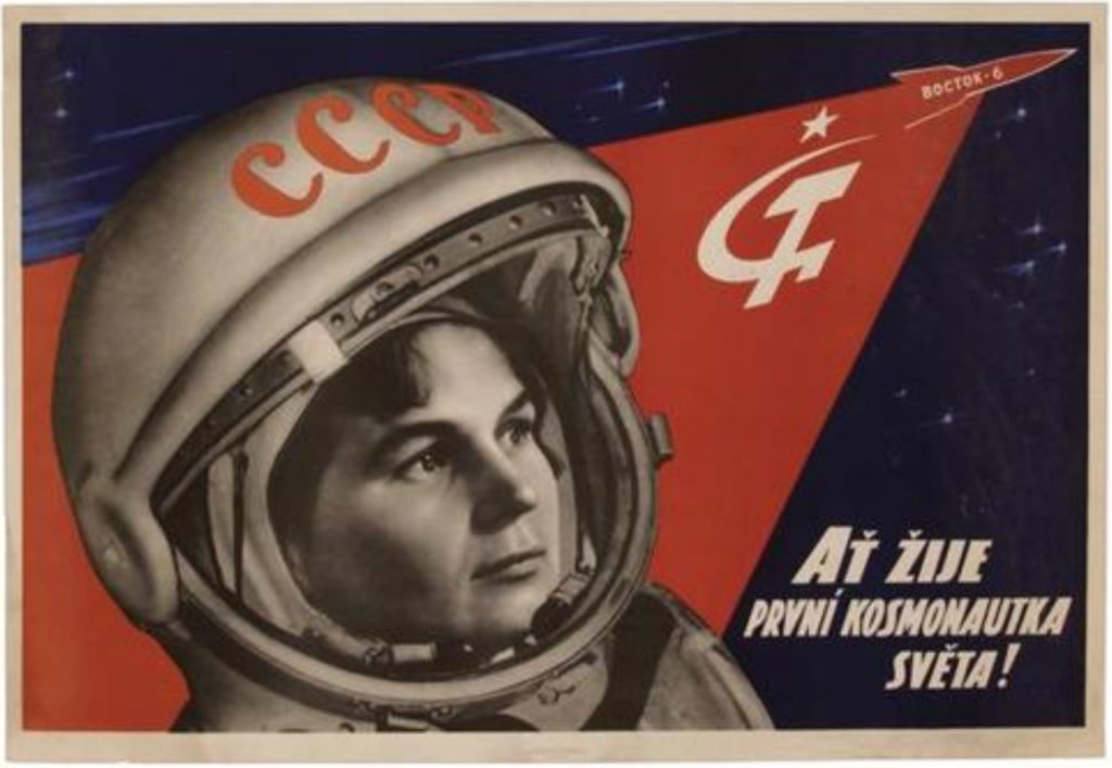 Mentre la politica statunitense costruiva con i media e il cinema un modello femminile basato su casa e famiglia, l’Unione Sovietica invitava le donne a lavorare e impegnarsi accanto agli uomini. E ad andare nello spazio insieme a loro: nel 1962 il governo lanciò il primo bando per la missione Vostok 6 e si candidarono in mille. Valentina, nata da famiglia proletaria in un villaggio della Russia europea, Maslennikovo nella regione di Tutaevskij, era allora impegnata come sarta e stiratrice in una fabbrica di cotone, ma già da giovanissima era appassionata di volo e paracadutismo. Fu scelta insieme a quattro, ma alla fine fu l’unica destinata al viaggio: pare che sia stato lo stesso segretario Urss, Nikita Krusciov, a selezionare quel nome perché “incarna gli ideali della Russia”.
