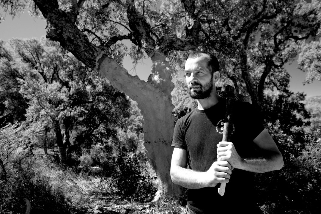 Il verde acceso di una foresta vista dall’alto e poi nei piccoli particolari: le formiche, ordinate, svolgono il loro lavoro sopra il tronco degli alberi; il cri cri delle cicale si alterna a dei colpi ritmati sul legno. Sono le asce dei lavoratori del sughero di Is Pranus, a Escalaplano, piccolo paese di frontiera del Gerrei, nel Sud Sardegna, al confine con l’Ogliastra. E poi gli uomini di quella foresta, “eroi” capaci di scalare alberi giganti di un luogo dalla natura così prorompente, da essere considerato quasi magico. Gli uomini sembrano fusi con gli alberi che, ogni dieci anni, regalano loro il sughero: il materiale estratto servirà per l’edilizia sostenibile e la produzione dei tappi per le bottiglie di vino. Il ciclo del sughero è un processo virtuoso: dopo l’estrazione, il bosco si rigenererà per un altro decennio e le querce di sughera assorbiranno tonnellate di Co2, contribuendo a ridurre gli effetti delle emissioni di gas sulla Terra.