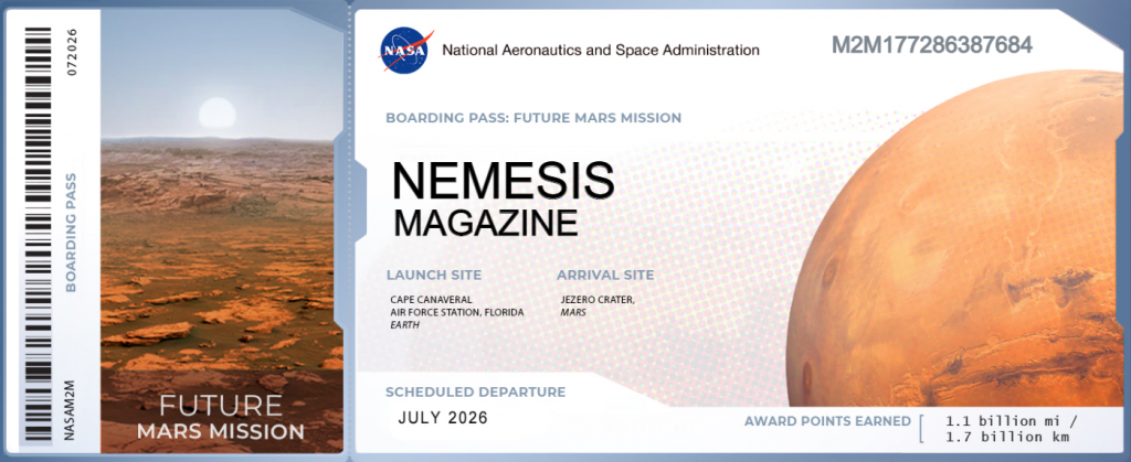 Si parte a giugno 2026 da Cape Canaveral Florida, direzione il cratere Jezero. Noi di Nemesis non potevamo mancare.