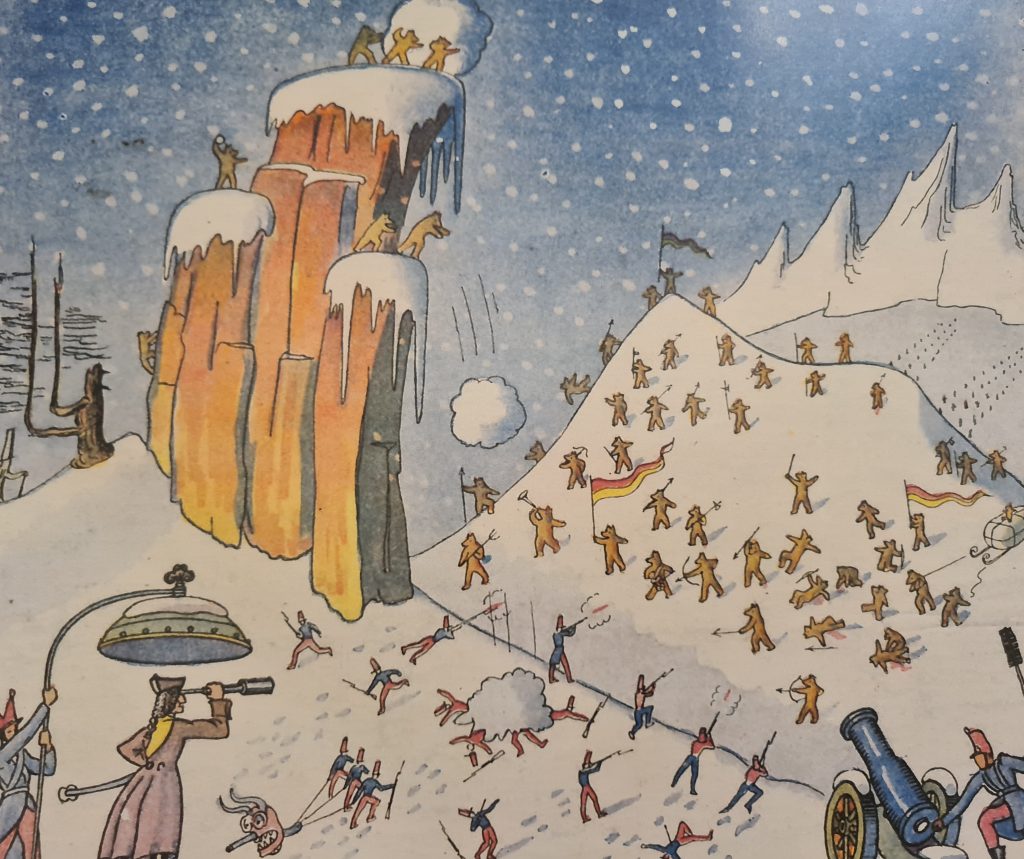 Pubblicato da Gaspari editore, il libro, che ha visto ogni sua fase di realizzazione curata dall’attrice Laura Fortuna, si avvale della traduzione di Antonella Puddu, mentre la traduzione delle rime è stata affidata a Riccardo Pittau. Le illustrazioni restano quelle originali di Dino Buzzati. Originale è anche il progetto grafico realizzato dall’illustratore Emiliano Serreli che per questa particolare edizione del volume non solo ha disegnato l’immagine di copertina, in stile Escher, ma ha anche utilizzato un’animazione flipbook grazie alla quale gli orsetti protagonisti del racconto possono essere visti in movimento sfogliando le pagine del libro da destra a sinistra e viceversa.