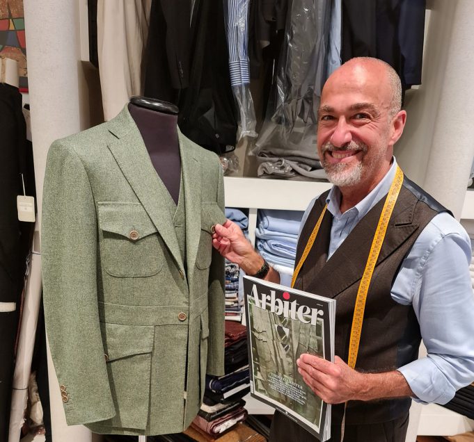 Cagliaritano, 63 anni, attivo da cinquanta, Gianfranco Orrù, talento sardo della sartoria, ha sbaragliato la concorrenza conquistando il primo posto al trofeo Arbiter, festival della moda maschile per eccellenza. La sua creazione vincente è un tre pezzi dal curioso nome “Il bosco in città” e comprende anche un’interpretazione della giacca Norfolk, il tipico modello da campagna scozzese. La perfezione della finitura, la scelta del colore, l’innovazione discreta e elegante hanno convinto la giuria di esperti a premiarlo come miglior sarto d’Italia. Una vita dedicata ai tessuti, ai tagli, agli accostamenti, una capacità analitica del corpo umano vicina alla precisione di uno scanner, l’amore per la ricerca. Questa è la vita di Gianfranco Orrù.