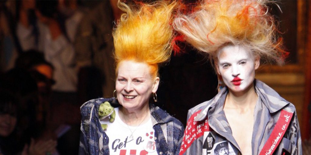 L’immagine che abbiamo del Punk la dobbiamo a lei, alla sua capacità visionaria di inventare accostamenti rigorosi a dettagli scandalosi, al suo osare oltre le regole pur utilizzando una tecnica sartoriale impeccabile. La sua prima sfilata, nel 1981, era ispirata ai costumi del XVII e XVIII secolo di cui Vivienne recupera alcuni elementi, come il corsetto, rendendoli attuali e moderni. Lei è così brava da saper prendere quanto di più noioso, visto e classico si possa immaginare e stravolgerne il senso. Un tessuto tradizionale come il tartan (detto comunemente “scozzese”) nelle sue mani diventa una bomba a orologeria pronta e esplodere e assurge a simbolo identitario per i punk ancora oggi. La stessa union jack, la bandiera inglese fa la sua comparsa negli abiti delle sue collezioni, in aperta polemica con la classe politica.