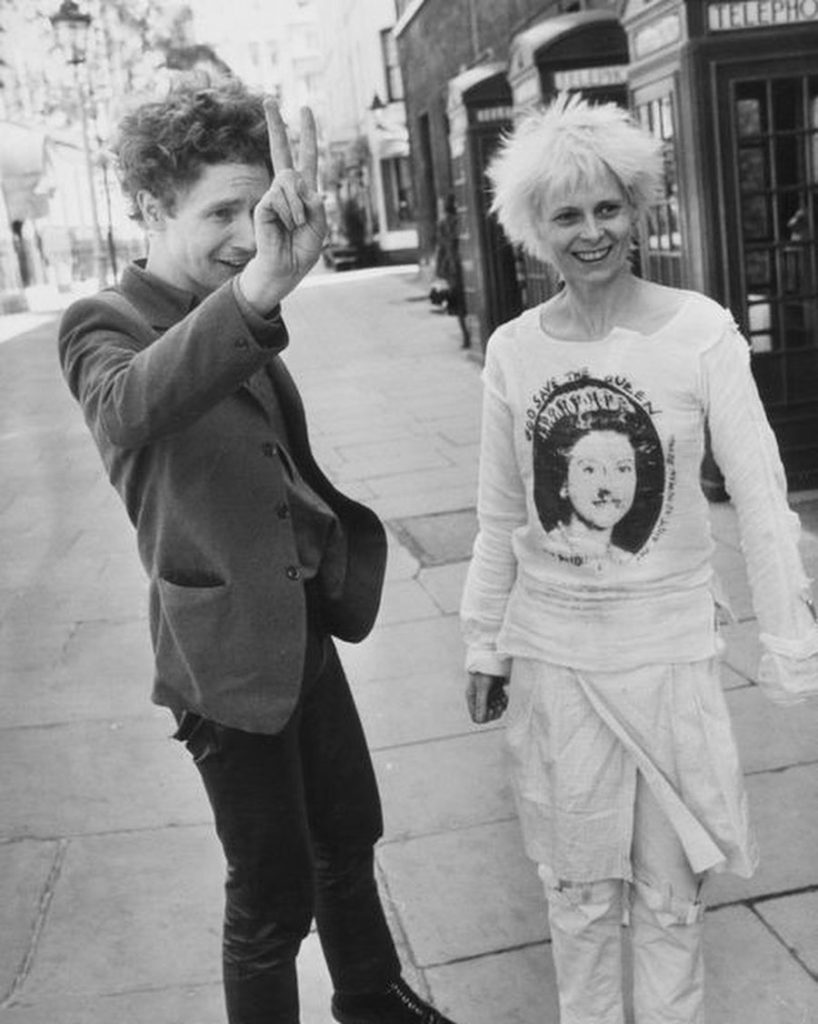 Vivienne cura la loro immagine pubblica: un’immagine aggressiva e provocatoria che utilizza svastiche, riferimenti al mondo sadomaso e soprattutto dissacra la massima autorità inglese vivente: la regina. Quando i Sex Pistols cantano “God save the queen” sfoggiando una maglietta strappata in cui l’immagine di Queen Elisabeth è deturpata dalla presenza di spille da balia sulle sue regali labbra è lo scandalo. Uno scandalo certo, ma anche un successo mondiale.