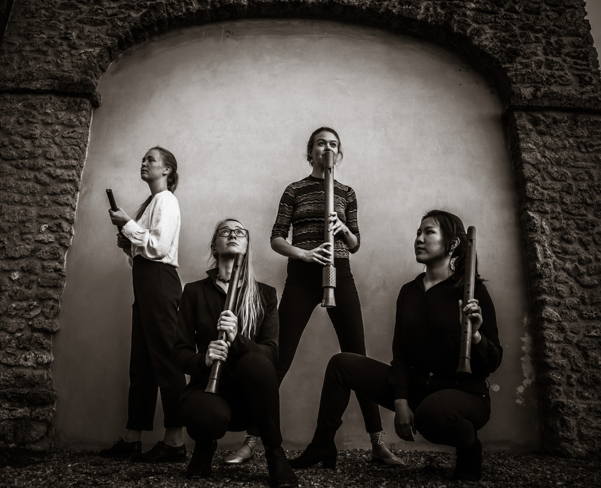 La vita celebrata attraverso l’accettazione della morte è il tema della serata del 2 aprile quando, ancora a Santa Maria del Monte, arriva per la prima volta a Echi lontani lo Sféra Ensemble, composto da quattro giovani flautiste originarie d’Austria, Germania, Taiwan & Repubblica Ceca, già vincitrici di alcuni importanti festival internazionali e da tempo impegnate in una ricerca sui codici monastici quattrocenteschi ed in particolare su epitaffi e composizioni scritte in memoria di alcuni compositori dell’epoca.