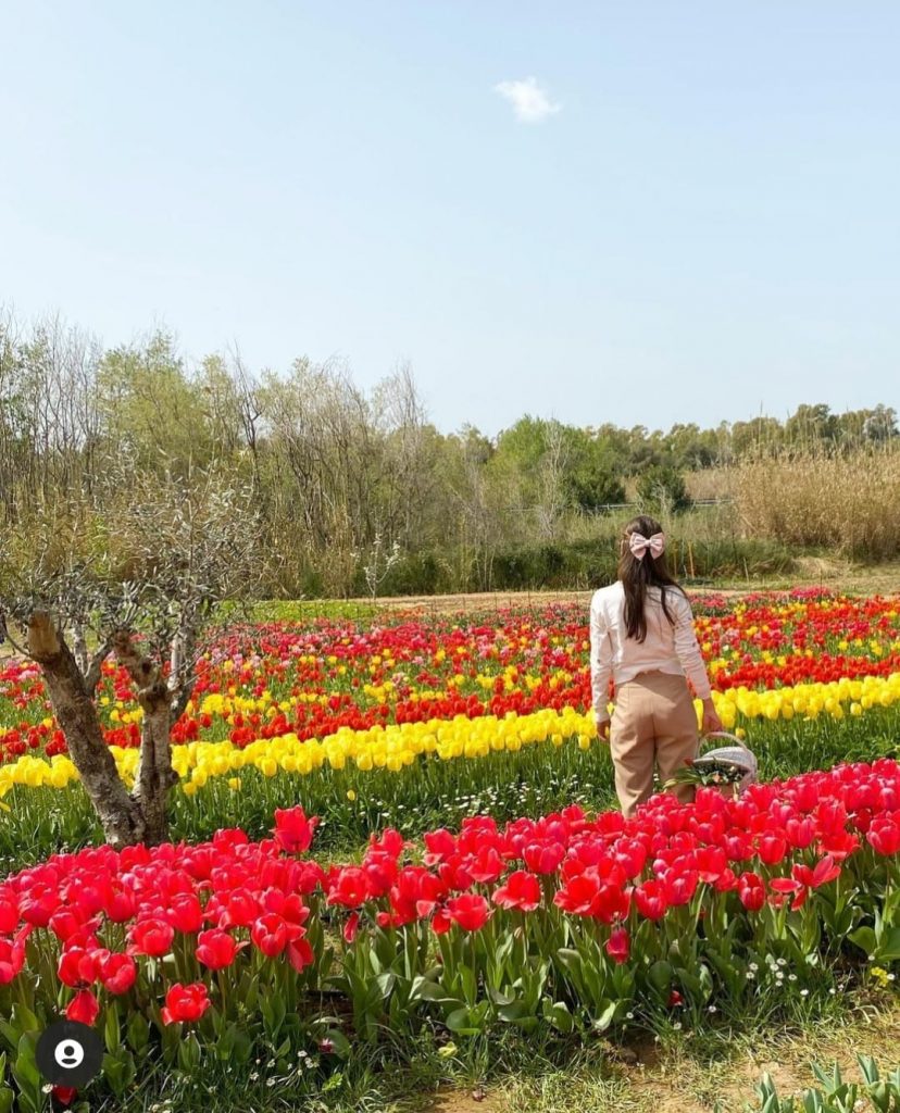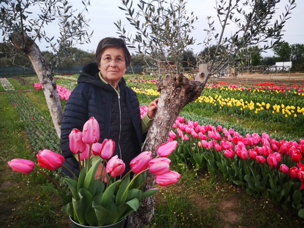 Maria, la sua famiglia e tanti volontari hanno lavorato a pieno ritmo per una fioritura straordinaria: Duecentomila tulipani distribuiti lungo trenta filari. Accanto al giardino si trova un boschetto di pioppi e dei ciclamini colorati adornano il ponticello che passa sopra un fiumiciattolo che scorre nei paraggi. Un ambiente naturale bello e colorato, carico di amore e portatore di un progetto.