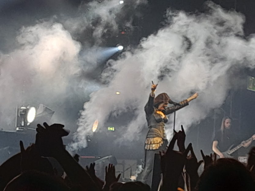 È bastata una manciata di brani per rimarcarlo e per scacciare le infauste premesse di alcuni e capire che sarebbe stata ancora una volta una lieta serata ricca di musica, energia e suggestioni. Tuomas Holopainen, tastierista, pianista, fondatore e vero motore dei Nightwish, il fedele sodale chitarrista Emppu Vuorinen, la cantante olandese Floor Jansen, il poliedrico musicista inglese Troy Donockley, il batterista Kai Hahto e il neoacquisto Jukka Koskinen sono stati i protagonisti dello show di circa un’ora e mezza, aperto dall‘Industrial Metal dei connazionali Turmion Kätilöt e con il Power Metal degli applauditissimi Beast In Black, dove hanno alternato i pezzi dell’ultima fatica discografica a quelli più datati.