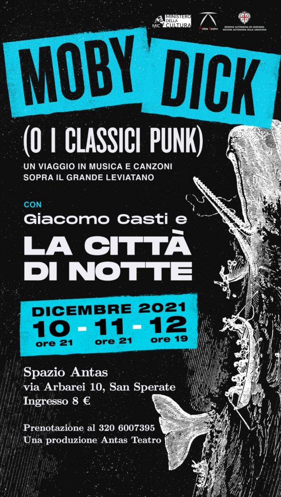 Giacomo Casti conduce lo spettatore in un percorso ricco di assonanze, che mostrano Moby Dick incredibilmente vicino al movimento punk di New York di fine anni Settanta. Con lui, sul palco, La Cittò di Notte, una delle migliori band attualmente in circolazione nell’Isola.