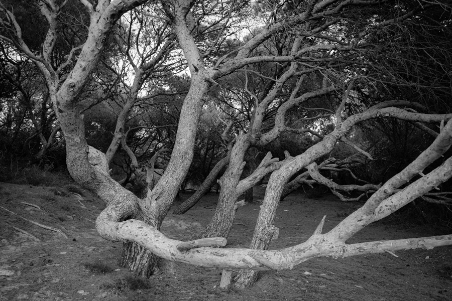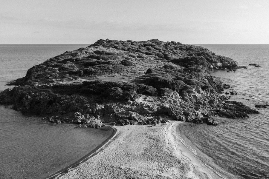 Passi, guizzo di gambe, veloci. Più rapidi ancora, per vincere il sole, già arancio di stanchezza. Tra noi poche le parole. Poi più avanti, una curva, un piccolo dirupo, infine vedemmo l’isolotto: Kr’dhl’n. Un pane di terra verde a forma di civraxiu, unito alla terraferma da un piccolo istmo dal corpo più di poseidonia morta che di sabbia.