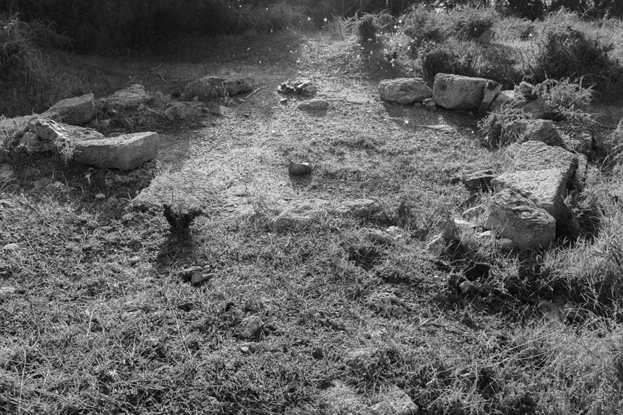 Un minuto di cammino, ancora ginepri, infine un sentierino disegnato a matita e infine lo trovammo. Il tempio di Ba’al era oramai solamente un recinto di pietre, un quadrato quasi fosse gioco di bambini. Un ricordo, un’idea. Ma non fu questo a sorprenderci, fu ben altro.