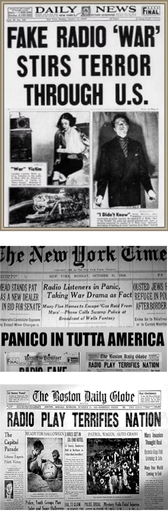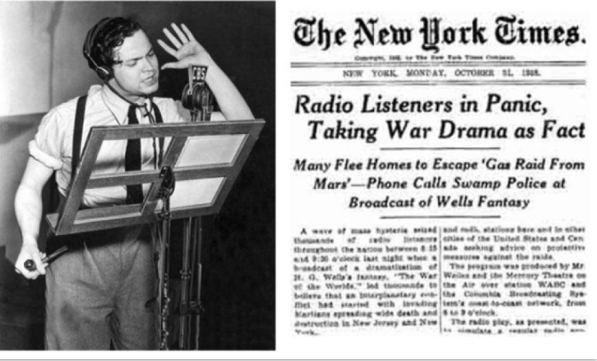 Non, quindi, l’errore indotto dall’avvincente narrazione radiofonica, proposta come una vera pièce teatrale perfettamente riuscita, ma un resoconto degli eventi che consegnò ai posteri una rappresentazione di scene di isteria di ignari radioascoltatori che, presi dal panico, abbandonarono la città per sfuggire all’invasione extraterrestre.