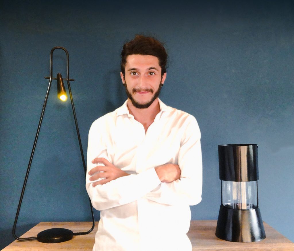 L’amore incondizionato e rispettoso per il fuoco parte dal ricordo di Gabriele, appena cinquenne, di quella fiammella viva che animava le vecchie lampade ad olio dei minatori di Porto Flavia, illuminando le loro storie tra le anguste e umide gallerie sotterranee. Ricordi molto belli e nitidi che gli ha impresso nella memoria suo nonno Franco, medico della miniera, attraverso i suoi racconti. “Sono sempre stato affascinato dalle storie di mio nonno, e dagli oggetti che richiamavano le miniere, in particolare dall’elemento ‘fuoco’ perché ha una poetica che riscalda, tipica della fiamma e del suono dell’atmosfera che crea, e ho trovato naturale unire le due cose”. Il fuoco lo ha ispirato infatti per la sua creazione innovativa: il focolare attorno al quale ci si riunisce e che unisce. “Il mio racconto dell’oggetto Phos vuole essere una speranza. Ho realizzato questa lampada che utilizza l’energia termoelettrica con il desiderio di poter raccontare quello che era il mio modo di vedere sia la luce che il fuoco, all’interno di una possibile idea di eco-sostenibilità dentro le nostre case, ma soprattutto per mostrare un nuovo modo di vedere le cose. La mia speranza è che qualcuno veda questo progetto e dica: “Ok, c’è un altro modo o altri modi per arrivare allo stesso risultato, che siano più sostenibili”.