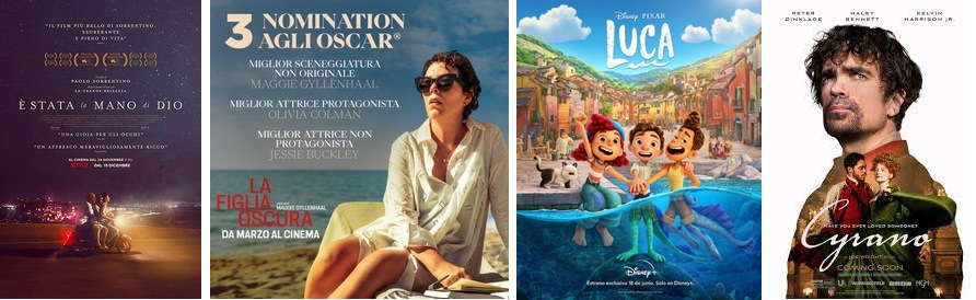 Oltre che per la candidatura nella categoria come Miglior film straniero ‘E’ stata la mano di Dio’, di Paolo Sorrentino, scorci d’italianità si intravedono nella nomination per Migliore Sceneggiatura non originale del film ‘La figlia oscura’, tratto dall’omonimo romanzo di Elena Ferrante e anche con il film ‘Luca’, candidato come Miglior film d’animazione, diretto da Enrico Casarosa, genovese di nascita. Nomination anche per Massimo Cantini Parrini, per la categoria Migliori costumi nella pellicola ‘Cyrano’.