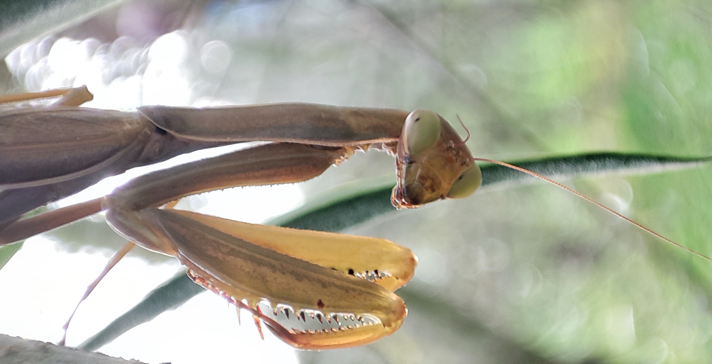 Assolutamente innocua per l’uomo, la mantide religiosa (Mantis religiosa Linnaeus) è un insetto carnivoro che protegge le piante da altri insetti, spesso infestanti o dannosi. L’aggettivo religiosa, che diventa parte del nome, gli è stato dato nel 1758 per la posa che l’insetto assume a riposo.