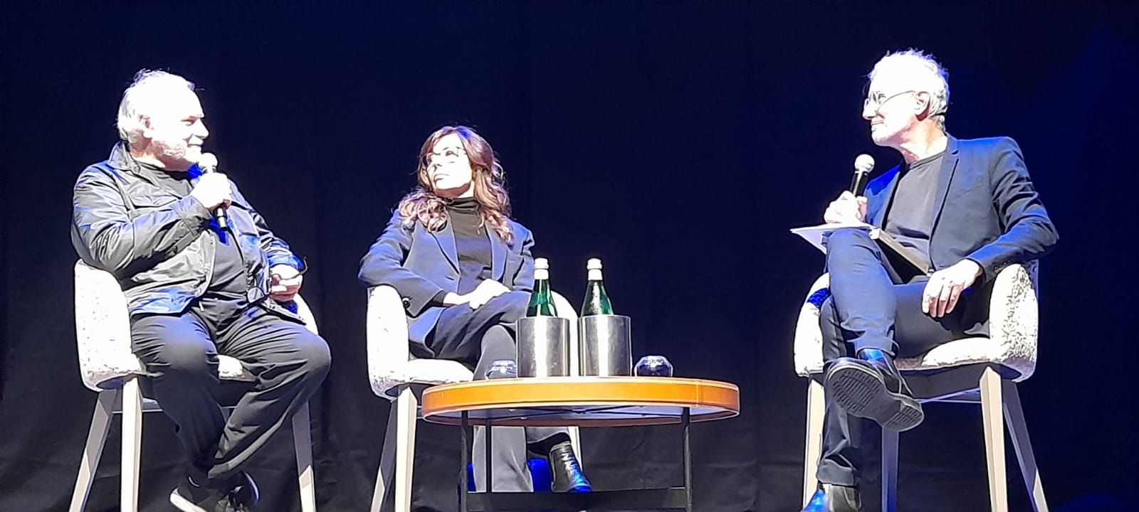 Ha avuto il suo bel da fare Giuseppe Murru per scandagliare assieme agli autori le pagine del libro e le mille storie che racconta. Il pubblico, in religioso silenzio, ha potuto godere e ascoltare dalla voce degli autori i tanti aneddoti e le moltitudini ripescate nella memoria di anni vissuti intensamente e non solo per la musica. Un cammino scandito da scelte di cuore e rinunce clamorose, ma anche dalla capacità di osare, sperimentare mondi apparentemente lontanissimi e di mettersi in gioco con esperienze artistiche alte e altre: Satie, Faurè e Ravel giusto per fare tre nomi, quasi in controcanto rispetto a quella che spesso, con estrema leggerezza, veniva catalogata frettolosamente come pop, musica leggera e finanche canzonetta.