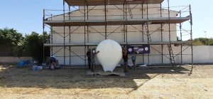 L’artista racconta cosi la sua nuova opera: “Il titolo dell’opera è Libera – mente, libertà, colori, vita, le mongolfiere rappresentano il concetto di libertà, su uno sfondo blu in cui si intersecano i colori del tramonto, ma allo stesso tempo c’è anche un richiamo alla terra perché i colori giallo, arancione e viola, sono gli stessi colori dello zafferano sangavinese”.