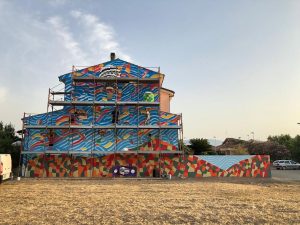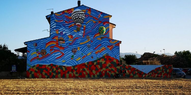Un volo di mongolfiere in un intreccio di colore: il nuovo murale di Paolo Mazzucco, in arte Mamblo, infonde un’idea di ritorno alla normalità, alla vita quotidiana, e di entusiasmo per la ripartenza. Il lavoro è stato inaugurato sabato 10 luglio a San Gavino Monreale dall’associazione Skizzo, da anni impegnata nel paese a promuovere e valorizzare la Street art.