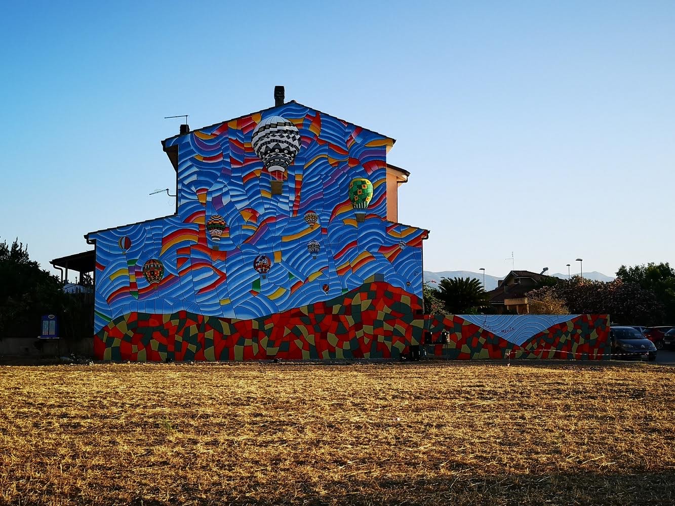 Un volo di mongolfiere in un intreccio di colore: il nuovo murale di Paolo Mazzucco, in arte Mamblo, infonde un’idea di ritorno alla normalità, alla vita quotidiana, e di entusiasmo per la ripartenza. Il lavoro è stato inaugurato sabato 10 luglio a San Gavino Monreale dall’associazione Skizzo, da anni impegnata nel paese a promuovere e valorizzare la Street art.