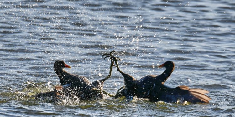La foto delle gallinelle d’acqua è stata scattata al Parco naturale Molentargius Saline.