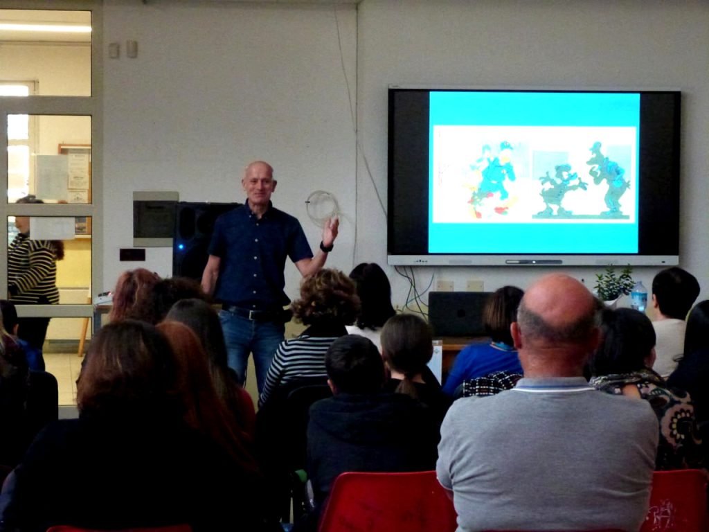 A introdurre i lavori la relazione di Luca Fiorani, docente alla Lumsa e alla Sophia nonché coordinatore dell’iniziativa interdisciplinare EcoOne. Dopo i saluti della dirigente scolastica del Gramsci Antonella Piredda, l’introduzione della docente Samantha Brau e l’intervento in videoconferenza di Davide Peddis, professore di chimica all’Università di Genova e neo presidente dell’associazione ScienzaSocietàScienza, il ricercatore e autore del libro “Happy Planet, guida ai grandi temi dell’ambiente” ha dato il proprio contributo divulgativo partendo dalla saggezza di Nonna Papera per arrivare a Zio Paperone e all’ossessione occidentale per il Pil.