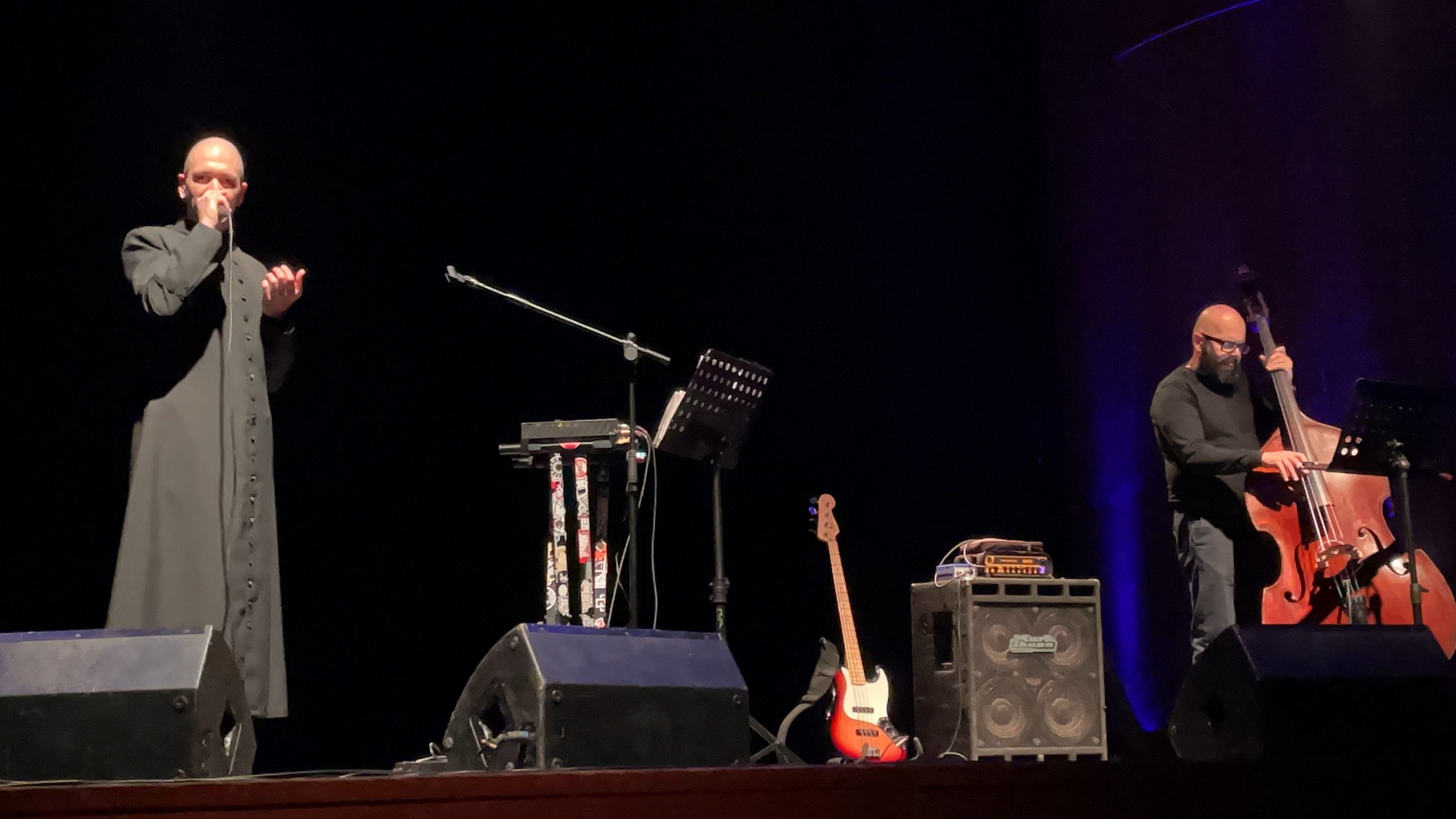 In scena lo scorso 28 gennaio al Ten di Nuoro, vestito da prete, così come Paulo, il parroco di Lollove, protagonista dell’opera deleddiana pubblicata per la prima volta a puntate nel 1919 nel giornale Il tempo, e in volume nel 1920 per la Treves di Milano, Bakis Beks fa quello che gli riesce meglio: racconta attraverso le rime che battono su una cassa cadenzata. Accompagnato al piano e tastiere da Omar Bandinu e al basso e contrabbasso da Pierluigi Manca, il rapper barbaricino interpreta in un modo originale e coinvolgente i brani deleddiani.