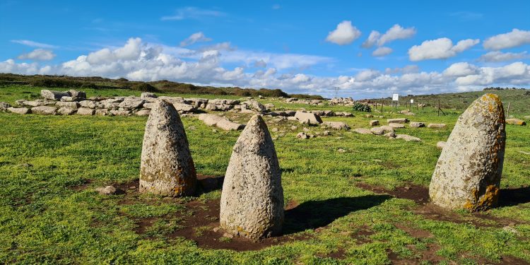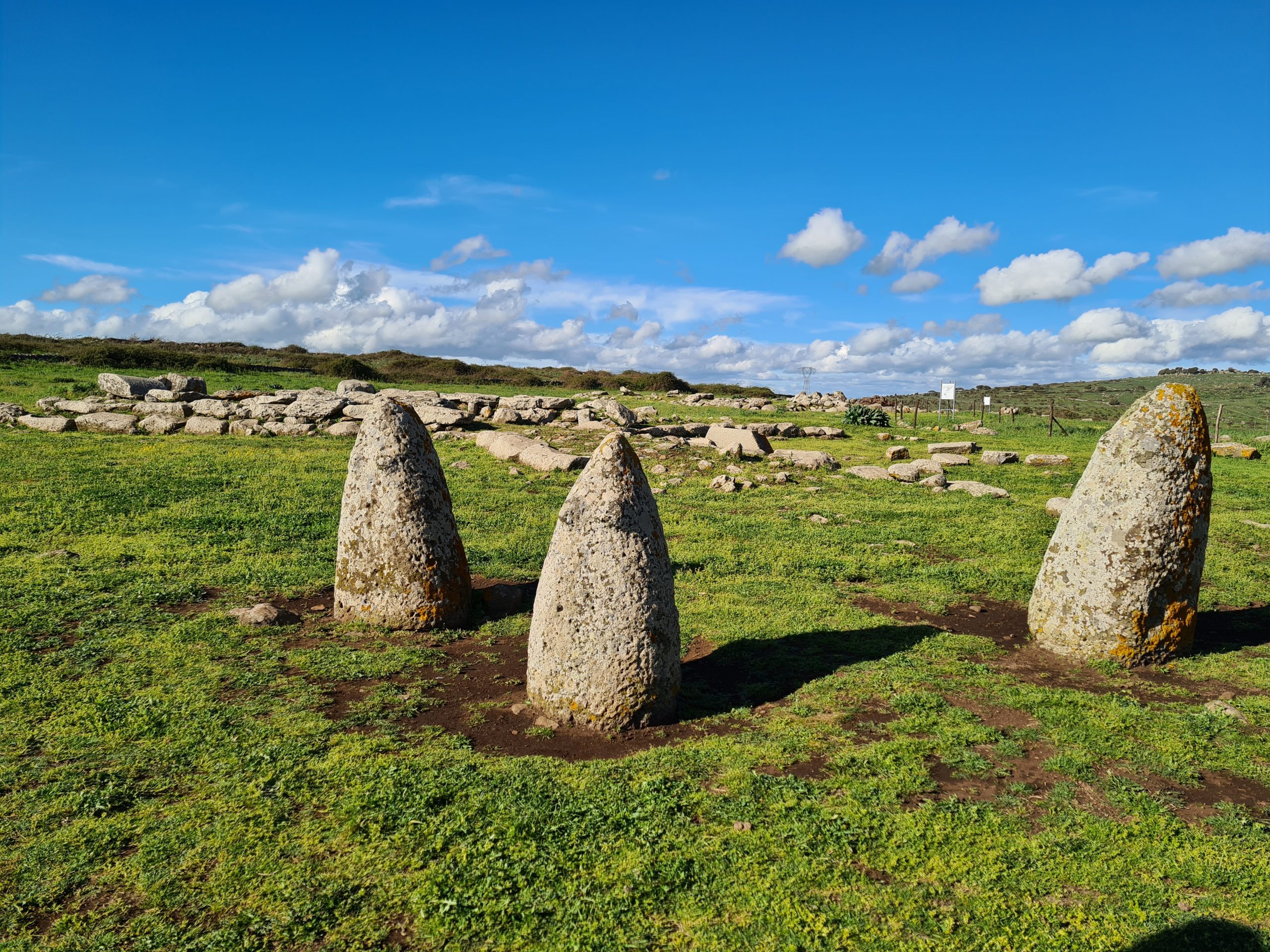Nella foto, il sito archeologico nuragico di Tamuli, Macomer, con i suoi betili e tre tombe di giganti.