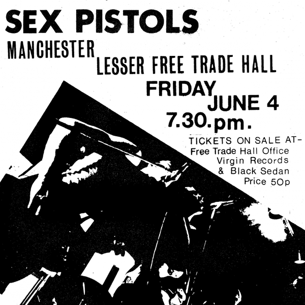 La locandina del concerto dei Sex Pistols a Manchester nel giugno 76