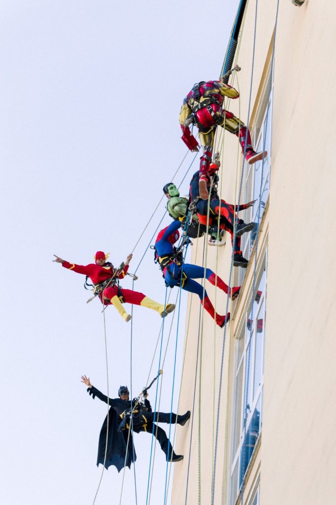 “Sarò Deadpool, un personaggio abbastanza demenziale”, ci dice Matteo Loddo che partecipa a questa iniziativa non solo in quanto operatore su fune di Edilizia Acrobatica, ma anche perché toccato dalle storie che Anna Marras gli ha raccontato. Per Matteo è la prima esperienza ma è anche la prima volta che l’evento si svolge in un ospedale della Sardegna, un’occasione per far arrivare il suo divertimento ed entusiasmo ai bambini.
