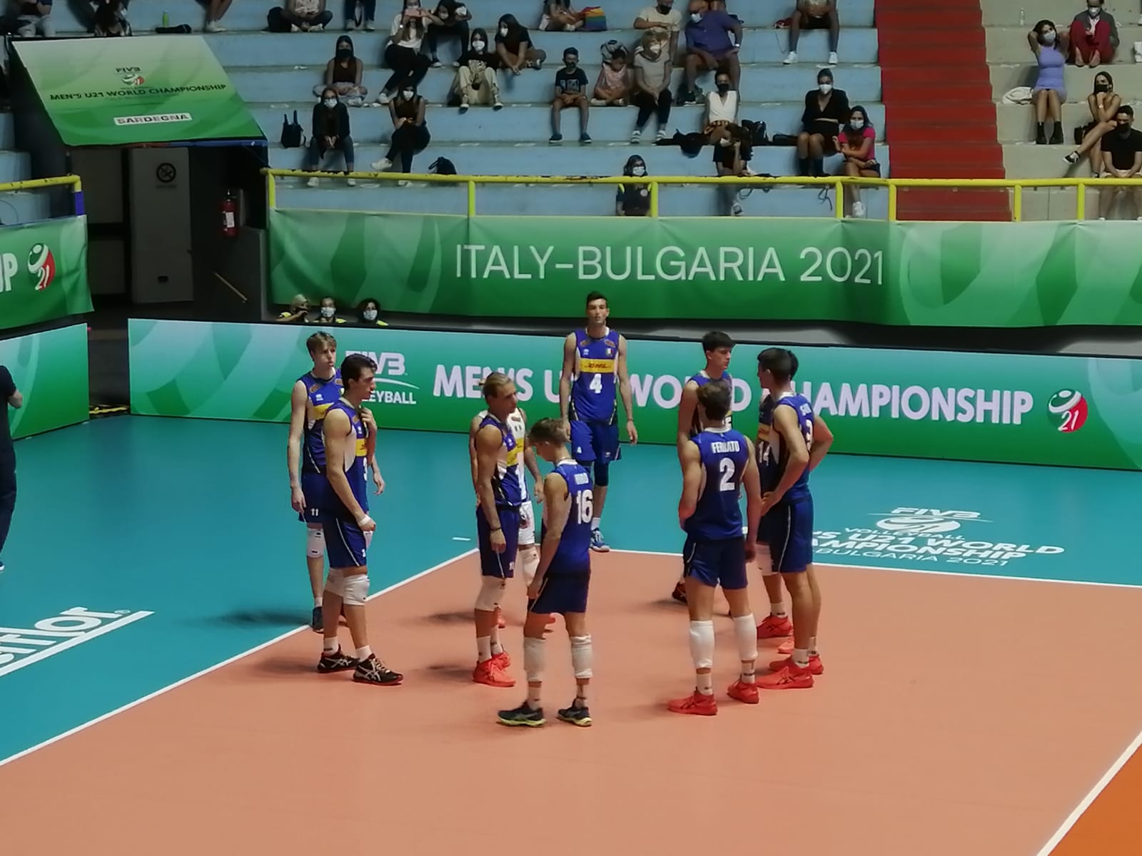 Ore 20.4. Con la vittoria al terzo set per 25 a 20 gli azzurrini conquistano la prima partita della seconda fase. I migliori in campo sono Stefani, Rinaldi, Cianciotta e Gottardo, senza trascurare le prodezze che il libero Damiano Catania ha regalato al pubblico entusiasta durante tutta la partita.